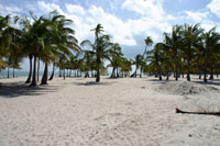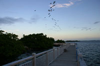 Der Flug über London und Terminnal 5 verlief reibungslos - und mit nur 45-minütiger Verspätung und einem kleinen Kreislaufkollaps meinerseits sind wir in Miami gelandet. Und dann passierte etwas Sonderbares: Keine langen Schlangen am Immigration Schalter, kein langes Warten am Gepäckband, alle Gepäckstücke angekommen und vor dem Flughafen steht der Bus zum Alamo bereit - so schnell waren wir noch nie eingereist und mit einem Auto versorgt worden! I Dank einer Übelkeit geht Sina direkt ins Bett. Ich untersuche unterdessen die Geschmacksunterschiede zwischen den Mc Donalds Doppelcheeseburgern in Deutschland und den USA - USA gewinnt, nicht alleine deshalb, weil es hier immer Doppelcheeseburger gibt !!. Dann noch 2 Budweiser (aus der Tanke und extrem teuer) und ich bin auch bettreif. 2. Tag: Biscayne NP und Key Biscayne Es ist 2:15 Uhr und ich bin hellwach - auch nach einer langen Reise genügen wohl dank Jetlag 7 Stunden Schlaf, da bringt das Herumwälzen der nächsten 45 Minuten auch nichts mehr. Zum Glück hat sich Sina auch kurz bewegt und nach kurzer Diskussion entscheiden wir uns, unsere Einkäufe im Walmart zu erledigen. Ein Hoch auf die Läden, die 24 Stunden geöffnet haben. Interessanterweise ist der Laden nicht leer, sondern eine Vielzahl von Mitarbeitern räumen die Regale neu ein und sind mit aufräumen und putzen beschäftigt. Allerdings in einem solchen Zeitlupentempo, dass auch gleich klar wird, weshalb so viele Mitarbeiter anwesend sein müssen. Jetzt in aller Ruhe die Sachen zusammengesucht - von Lebensmitteln für Picknicks über Schnochelausrüstungen bis zum neuen Tennisschläger für Sina bekommen wir einfach alles.