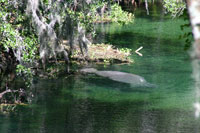 Ein Holzsteg fürht vom Parkplatz aus am Bach entlang bis zur Mündung in den Fluss. Sumpfwälder säumen den Wegrand und das Wasser im Bachlauf ist glasklar. In der Mündung entdecken wir dann auch, leider nur schwach, auf der gegenüberliegenden Uferseite ein paar Manatees. Vor uns tummeln sich noch ein paar Wasserschildkröten, die ihre Köpfe aus dem Wasser strecken um dann wieder zum Grund abzutauchen - das sieht echt lustig aus.