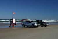 Weiter gehts nach Daytona Beach - natürlich zum Wet T-Shirt Contest. Daytona Beach gliedert sich in 2 Bereiche, der Teil auf dem Festland und der vorgelagerte Bereich Daytona Beach Shores. Der Küstenstraße auf den Sohres entlange folgen wir bis zum Zentrum. Die Straße ist dicht bebaut mit Wohnbunkern und Motels, Hotels und Clubs, die wohl in der Hochsaison Tausende von Menschen unterbringen können. Ab und zu gibt es eine Zufahrt