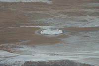 Auf der Rückfahrt zweigen wir noch zum Ubehebe Crater ab, einem gigantischen Vulkankrater, der bei einer Explosion vor rund 2000 Jahren entstanden ist. Wenn man vor dem gigantischen Loch des Kraters mit seinem Durchmesser von rund 800 m und der einer Tiefe von 150 m steht kann man sich gar nicht vorstellen, welch Explosionskraft hinter einer solchen Wucht stecken muss. Der kleine Nebenkrater, zu dem man noch rund 500m den Berg hinauf muss wirkt dagegen wie die Kindergartenversion.