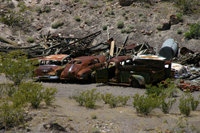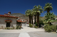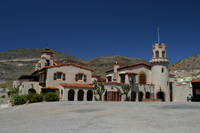 Wir fahren weiter zu Scotty´s Castle. Das Castle ist noch immer im Death Valley gelegen, trotzdem fahren wir knapp 1,5 Stunden, bis wir die rund 130 km überbrückt haben. Scotty war ein Industrieller aus Chicago, der sich hier gegen 1940 seinen Traum verwirklicht hat. Auf 3000 Fuß gelegen sind die Temperaturen hier im Schatten angenehm und wir stillen unseren Hunger mit ein paar Käsesandwiches. Danach machen wir uns über die Villa her und besteigen den "Hausberg", einen Hügel, auf dem Scotty oberhalb seiner Villa begraben liegt.
