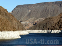 Im Luxor, unserem Hotel, haben wir dann auch das Dinner am Buffet genossen. Essen war lecker, wenngleich dei Qualität seit vor eineinhalb Jahren abgenommen hat. Das nächste mal vielleicht do in ein anderes Hotel? Der Strip ist fast menschenleer, ein Tribut an Winter und die Vorweihnachtszeit. Ein Taxifahrer sagt uns, dass Las Vegas an Weihnachten praktisch eine Ghost Town sei. Trotzdem laufen die ganzen Attraktionen: Das Wasserspiel im Belagio und der Vulkanausbruch im Mirage. Das Venetian verzückt mit Markusplatz und uns tun mittlerweile die Füße weh. Mit dem Taxi gehts zum Absacker ins Hofbräuhaus, doch daraus wird leider auch nichts mehr. Es ist 11:00 Uhr und der Wirt hat gerade abgeschlossen. Also zurück zum Hotel und noch ein paar Groschen verzocken ... 6. Tag: Von Las Vegas über Hoover Dam, Valley of Fire SP nach St George Nach dem Besuch des IHOP (International House Of Pancakes) und den üblichen Eiern mit Speck, Omeltt und gefüllten Crepes gehts zum Hoover Dam. Der neue Highway mit zweispuriger Brücke ist mittlerweile fertig und wir haben auch direkt den Abzweig zum Hoover Dam hinunter verpasst. Am Hoover Dam habe ich meine Mitfahrer aussteigen lassen und bin zum Wenden auf die andere Seite gefahren. Um den Fussgängern genügend Zeit einzuräumen habe ich mir einen Parkplatz gesucht - und dann einen noch besseren entdeckt. Ich bin direkt auf der linken Straßenseite mit dem halben Auto auf dem Standstreifen die 10 Meter zum Parkplatz gefahren, doch schien dem entgegenkommenden Auto die restlichen 15 Meter Straßenbreite zu eng zu sein. Mit Dauerhupen und einer Frau auf dem Beifahrersitz, die sich vor Entsetzen den Kopf mit beiden Händen halten musste und mit weit aufgerissenen Augen und Todesschrei in Sekundenbruchteilen ihre letzten Jahre durchlebt hat, hat es der gekonnte Fahrer doch noch geschaft, an mir vorbei zu fahren. Die sollten mal nach China kommen ...