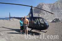 7. Tag: Rotorua Wir lassen den Tag langsam angehen. Leider konnte ich das Motel nicht nochmal verlängern, so dass wir unser Zimmer räumen und uns dann zum Frühstück aufmachen. Dank eines Telefonats vom Vortag nutzen wir den gesamten Vormittag, um unsere Zukunft zu diskutieren. Wir sind pünktlich beim Lake und am Stand von unserem Heli-Provider. Die Bude ist komplett überfüllt mit einem Rudel Chinesen, die sich lautstark unterhalten. Wir lernen unsere Pilotin kennen und erfahren zudem, dass wir mit dem kleinen Helikopter, einem 3-Sitzer unterwegs sein werden und nicht, wie gestern noch erfahen, im großen mit 2 weiteren Passagieren - super !!! Der Flug über and und Vulkane und dann noch übers Meer ist ein Erlebnis mit tollen Aussichten, der Höhepunkt bildet dann der Anflug auf White Island mit Landung. White Island ist eine Vulkaninsel, die noch immer sehr aktiv ist. Im 19. Jahrhundert wurde hier auf der Insel eine Schwefelmine installiert, die mehrmals geschlossen wurde um im 20. Jahrhundert bei einer Erruption alle Arbeiter umgekommen sind. Heute sind nur noch Ruinen übrig, die Zerstörung kommt aber nicht von der Eruption, sondern von den ständigen Schwefeldämpfen und der dadurch geförderten Korrosion.